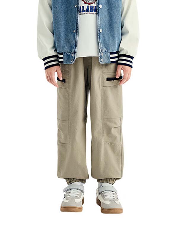 Boys’ Beige Cargo Pants: Loose-Fit Casual Trousers with Multiple Pockets for Daily Play & Streetwear