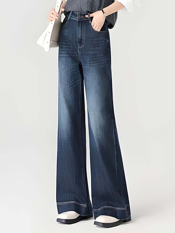 Dark Blue Gradient Wide-Leg Jeans with Double-Stitched