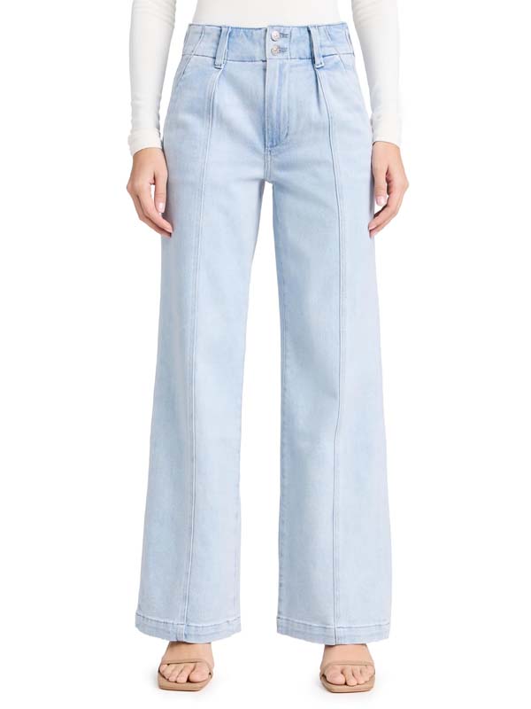 Light Blue High-Waisted Wide-Leg Jeans with Double-Stitched Seams & Reinforced Closures