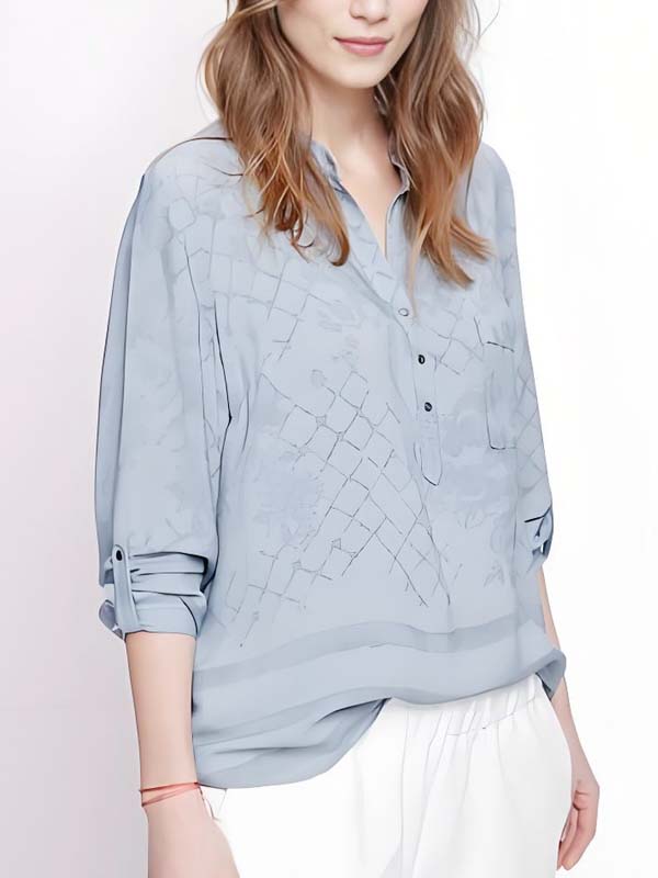 Light Blue Printed Blouse with Precise Pattern Alignment & Reinforced Placket