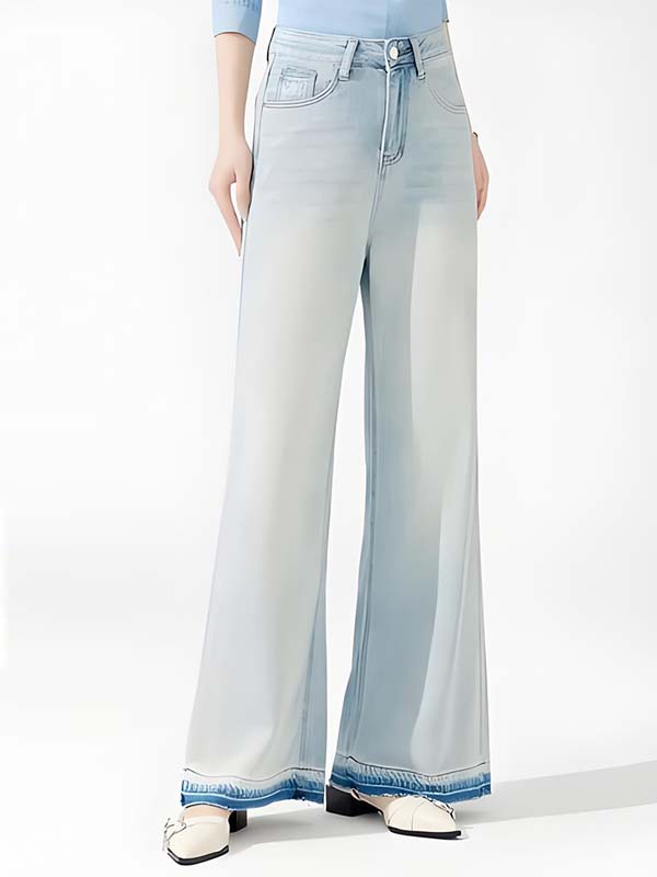 Light Blue Wide-Leg Jeans with Secure Gradient Hem Stitching