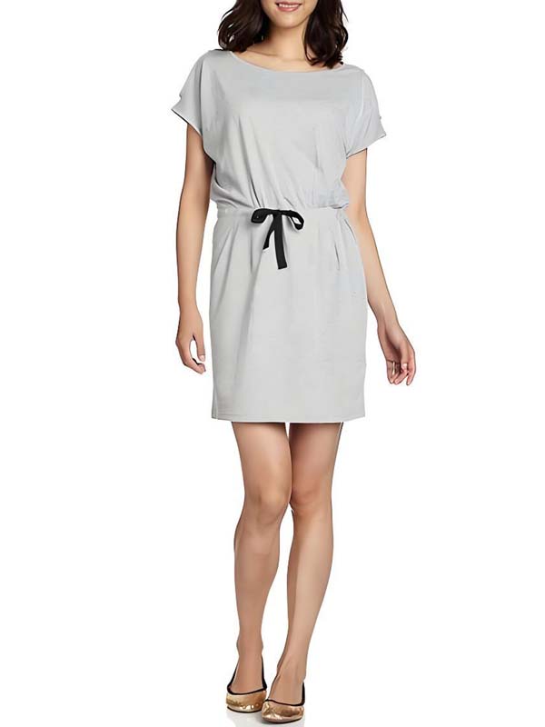 Light Gray Tie-Waist Dress with Reinforced Tie Stitching & Aligned Side Seams