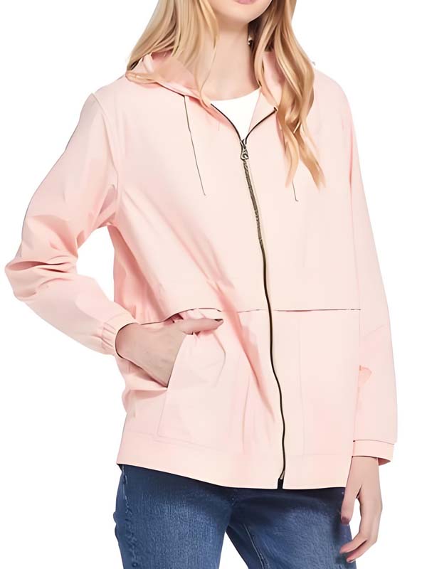 Light Pink Hooded Jacket with Adjustable Drawstrings & Reinforced Zipper