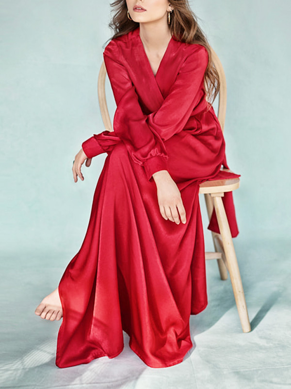 Luxury Satin Long Night Robe for Women | Deep Red Silky Sleepwear