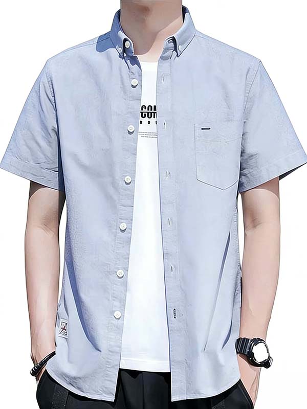 Men’s Light Blue Short-Sleeve Shirt: Meticulously Stitched Casual Button-Down Top