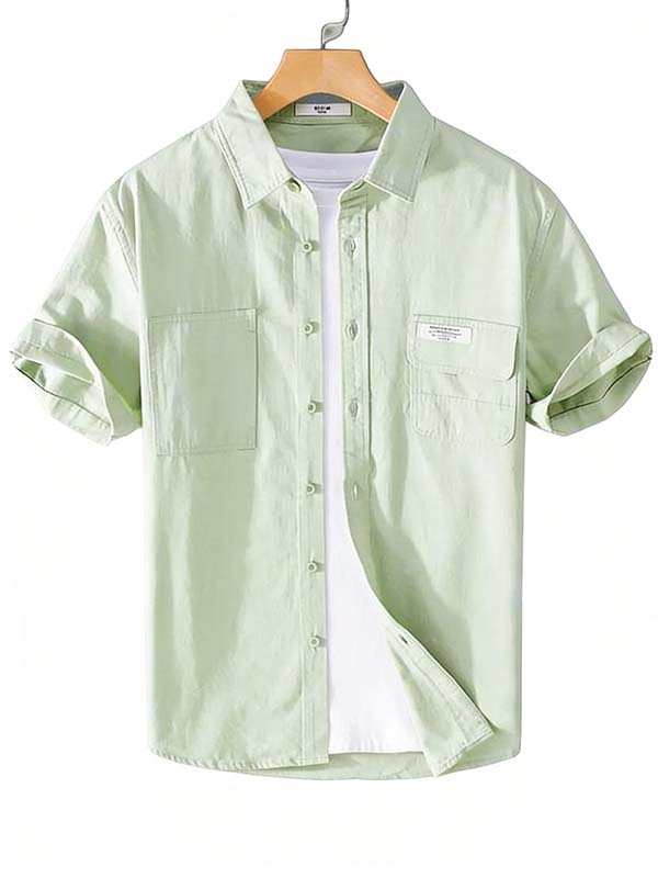 Men’s Light Green Short-Sleeve Shirt: Precisely Stitched Dual-Pocket Button-Down Top